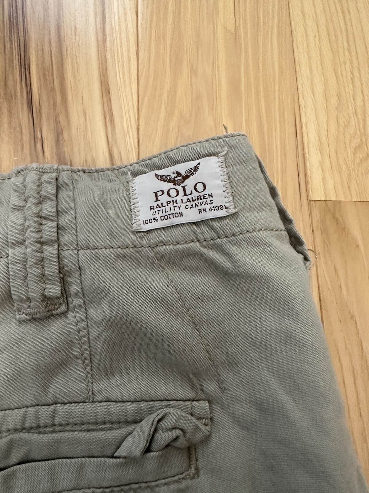 Description: Polo Ralph Lauren 42 Tall Green Utility Canvas Cinch Waist Military Cargo Shorts. Condition is Pre-owned. Shipped with USPS Ground Advantage.