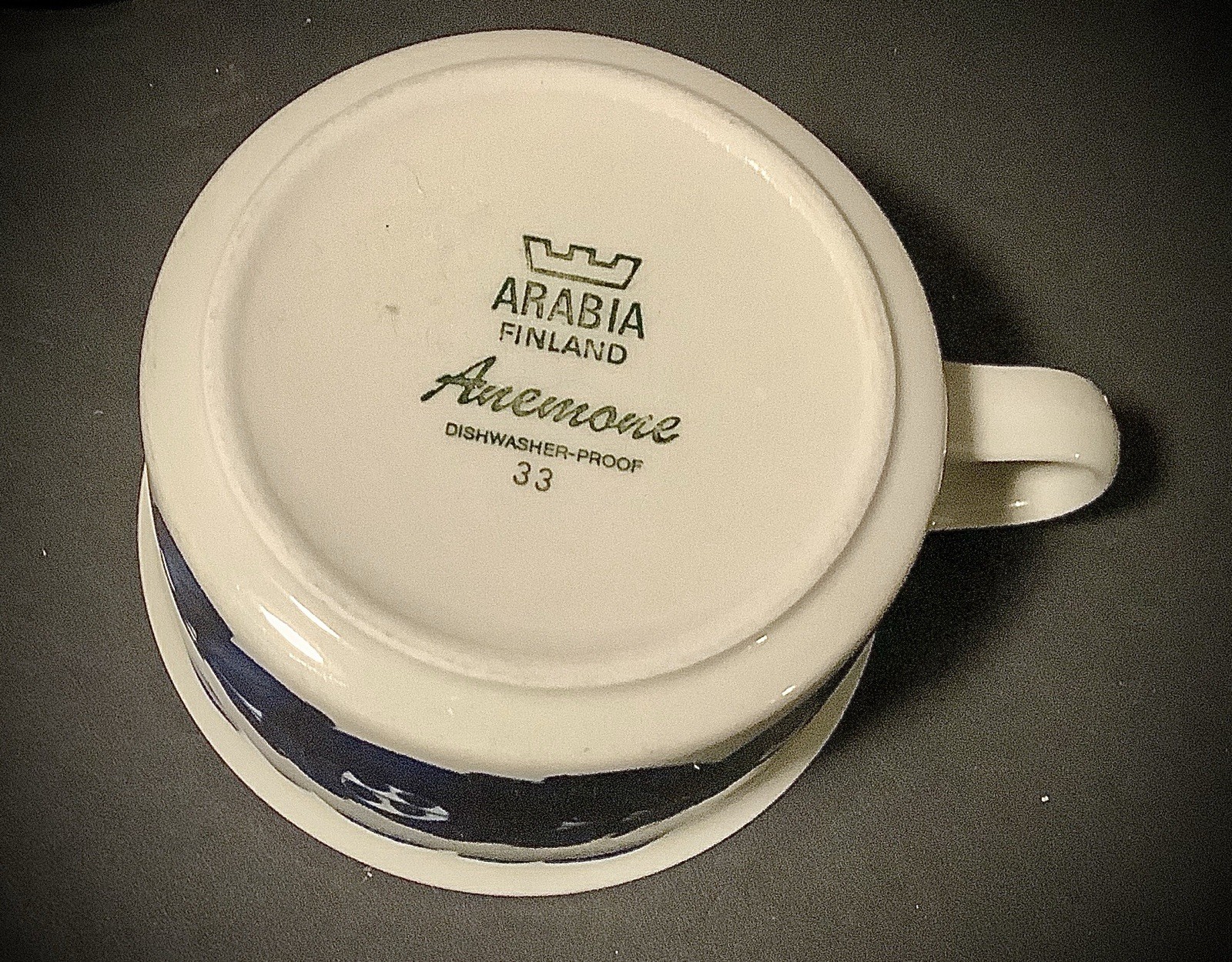 Description: The ARABIA FINLAND Anemone Blue Flat Coffee Cups are a vintage set of round cups with a mid-century modern style, featuring a blue and white anemone pattern. Made of porcelain, stoneware, and ceramic, these cups are handcrafted in Finland and signed by Ulla Procope. With a glossy finish and suitable for hot beverages, these cups are perfect for various occasions such as birthdays, anniversaries, or just as a thoughtful gift. The production technique is pottery, and the design is inspired by tea, art, and the beauty of Finnish pottery.