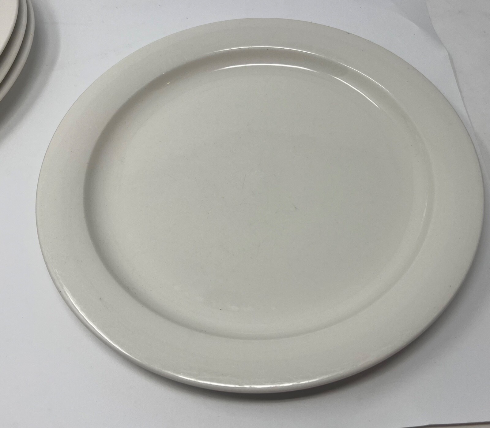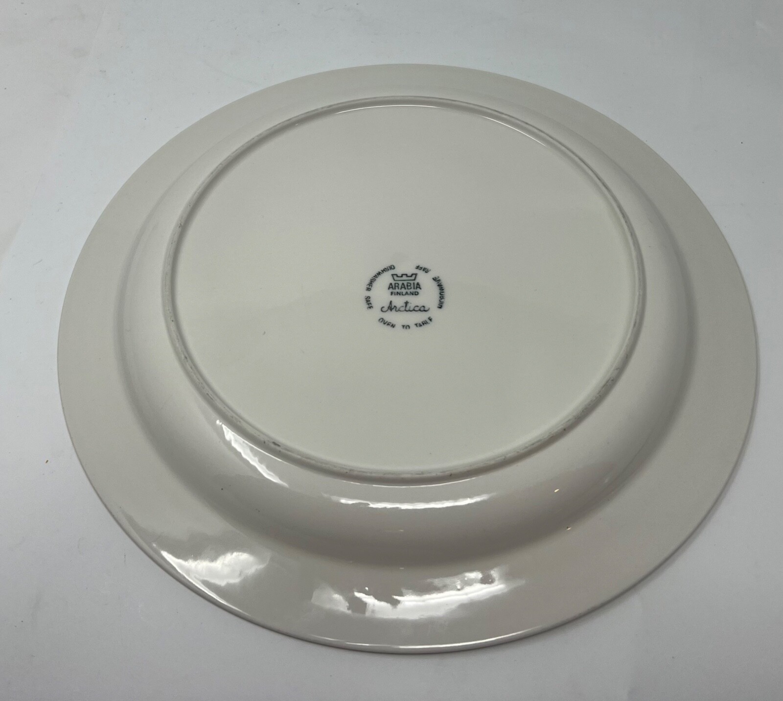 Description: Set of 4 10.25″ white Arabia Finland Arctica dinner plates. Please refer to photos.