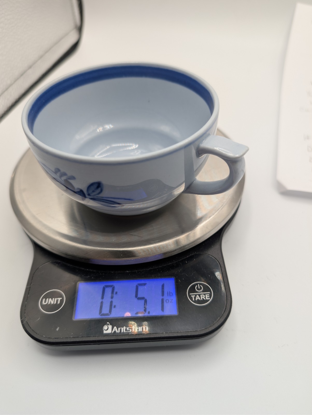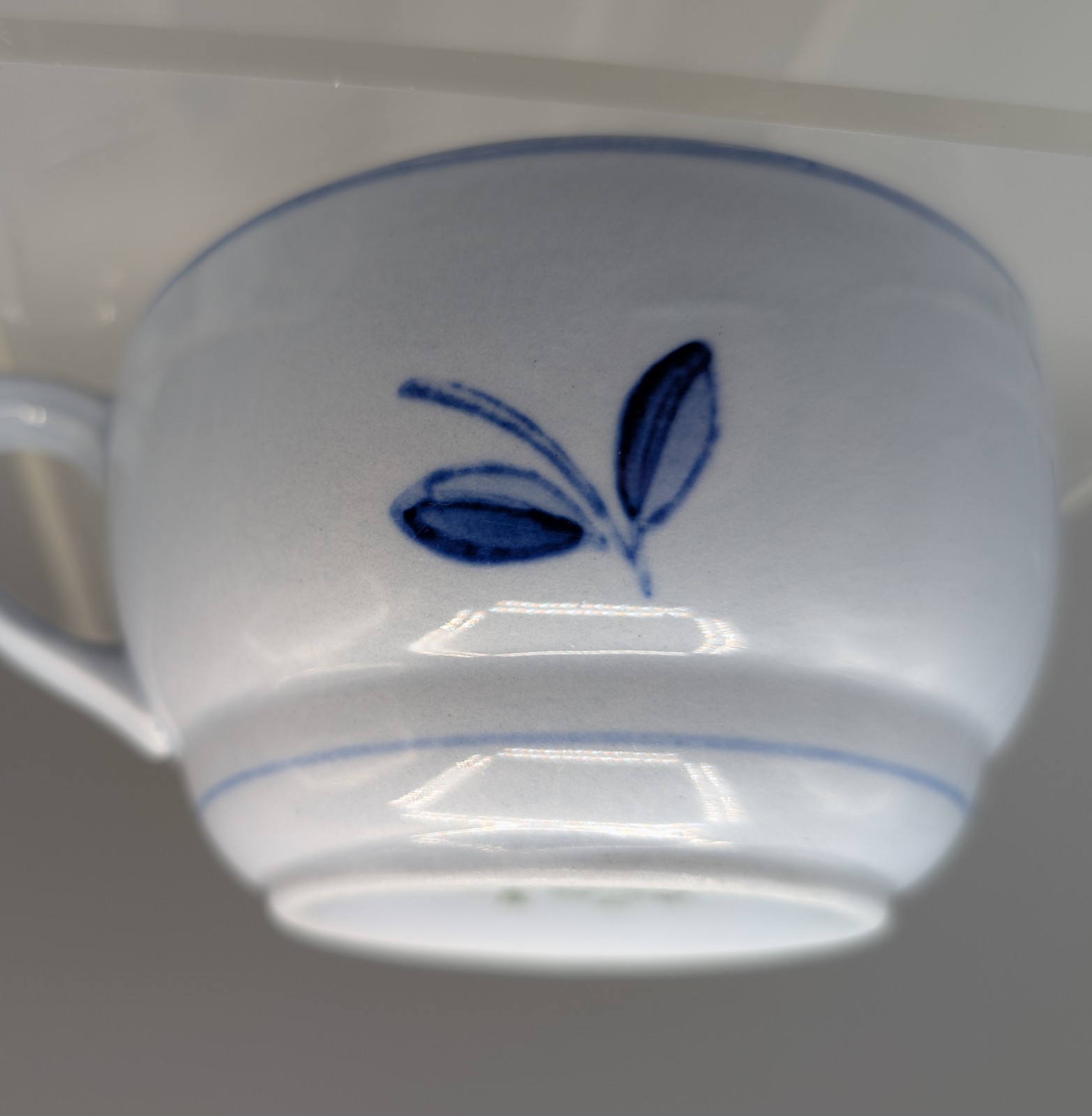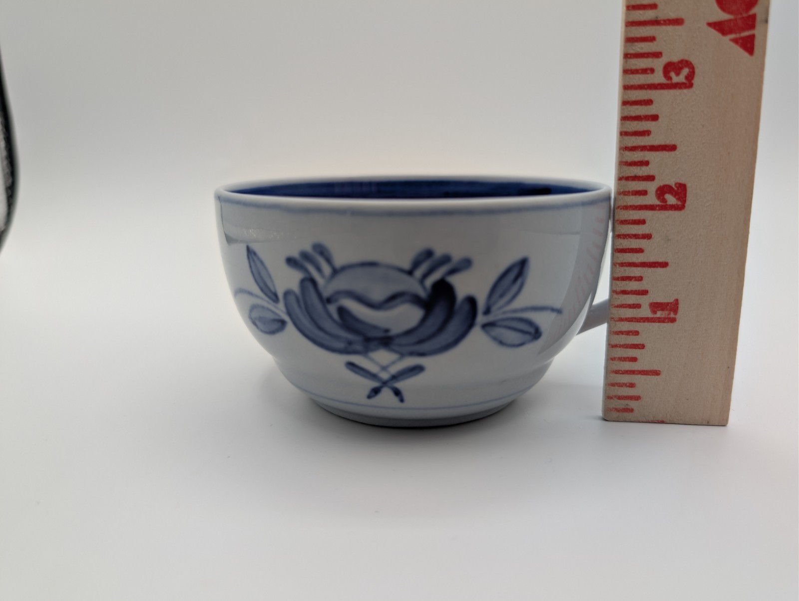 Description: Siniruusu – Blue Rose. Arabia of Finland. Pale blue background glaze. The original Arabia factory in Helsinki closed in 2016. Also considered Coffee cup (no saucer). Tea cup only (no saucer). Made in Finland.