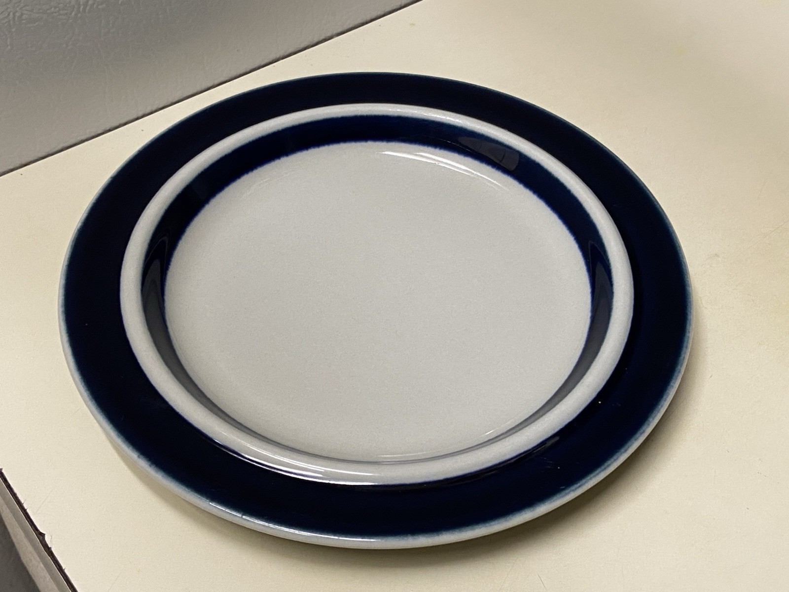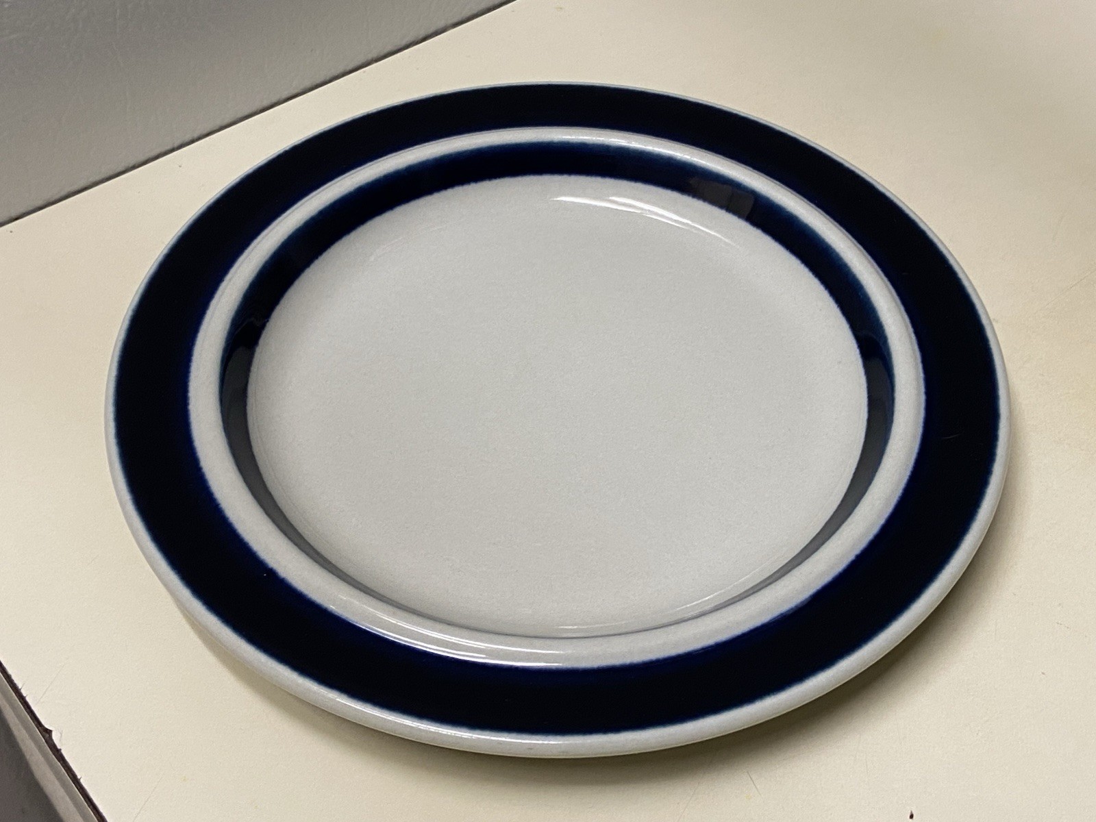 Description: Ceramic plate lot, designed by Ulla Procopé and produced in Finland during the 1960s–1970s. • Designer: Ulla Procopé. • Pattern: Anemone (Blue floral on white). • Manufacturer: Arabia of Finland. ⚠️ Disclosure: The 6.5″ saucer plate has a small chip (clearly shown in photos).