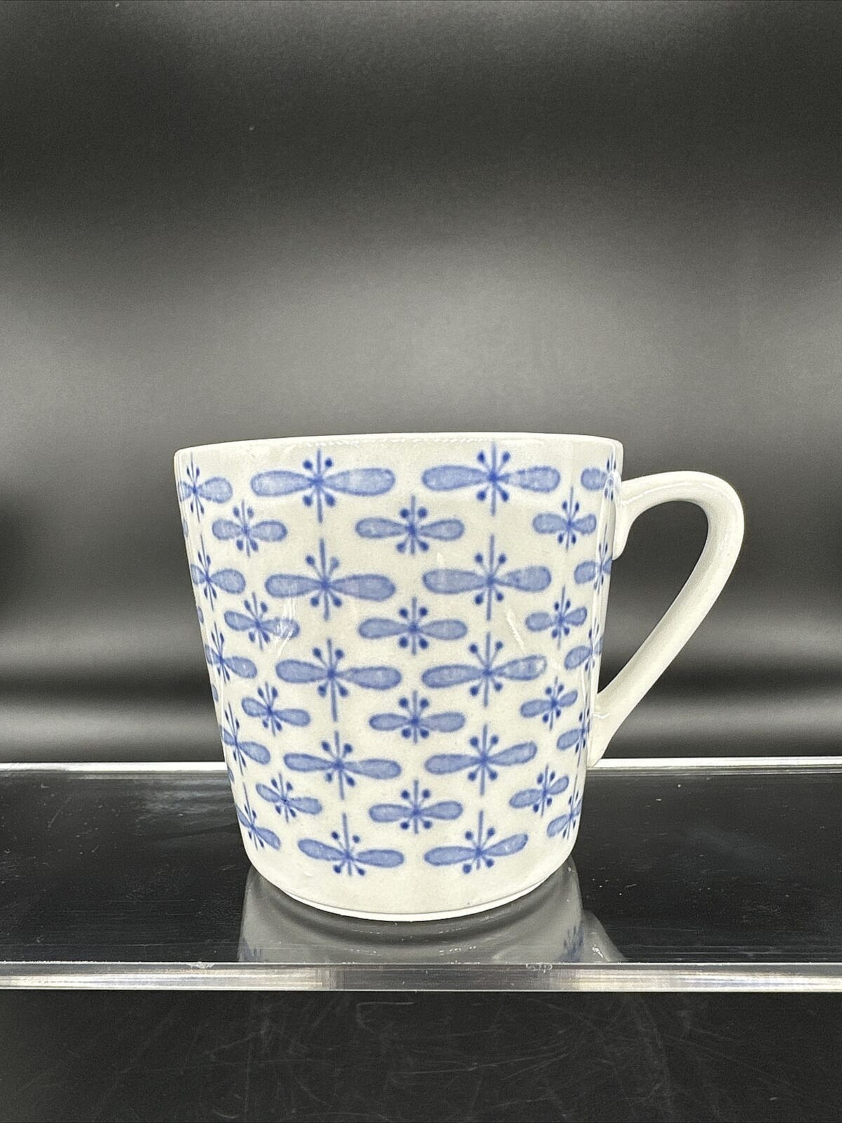 Description: By artist Raija Uosikkinen. from Arabia Finland. white background with blue design.