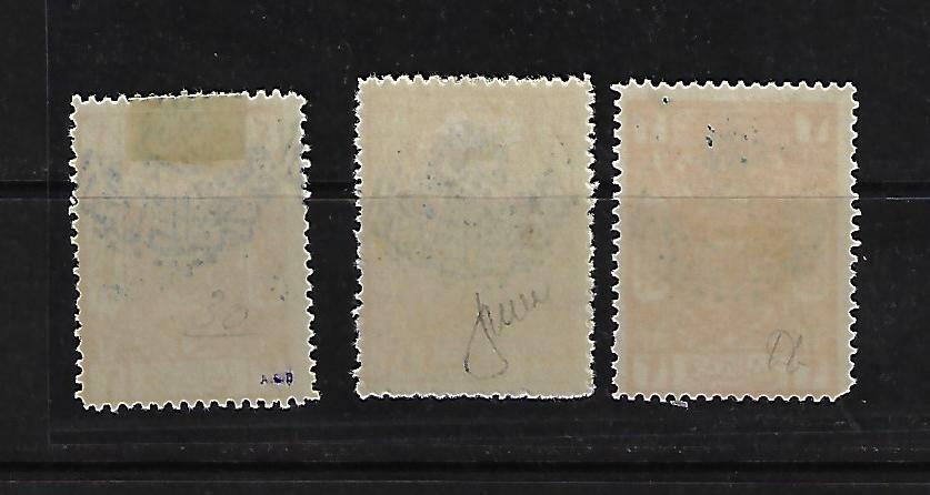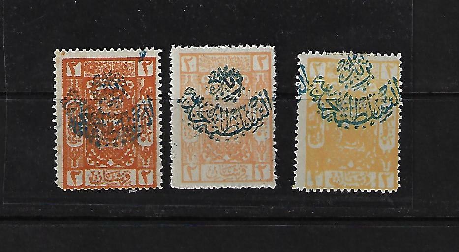 Description: SECOND NEJD HANDSTAMP IN BLUE & ORANGE BROWNISH OCHRE & LEMON. SAUDI ARABIA NEJD 1925. THIS LAST SCANRCEST BUT UNLISTED. NOTE ALL THREE ARE SIGNED BY THE THREE RECOGNIZED EXPERTS IN THE FIELD.