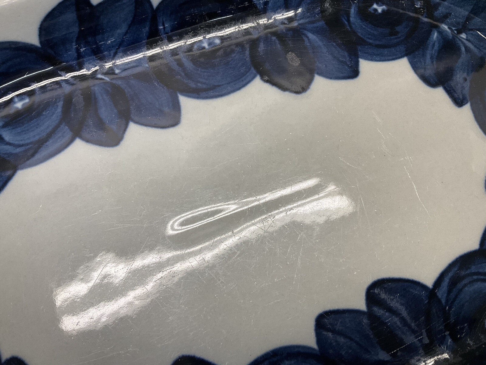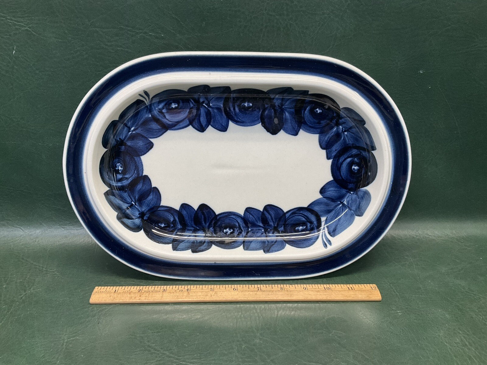 Description: Fresh from the local Cape Cod estate we offer you this vintage Arabia of Finland ANEMONE blue 14″ oval serving platter by Ulla Procopé. It is in good used condition with wear, no chips or cracks, utensil scratches to the glaze as shown. Please check all the photos for more details, they are part of the description.