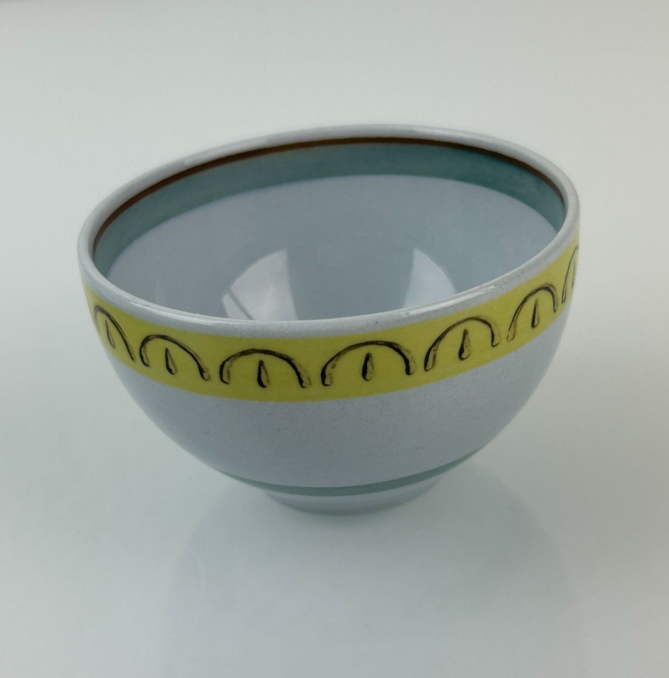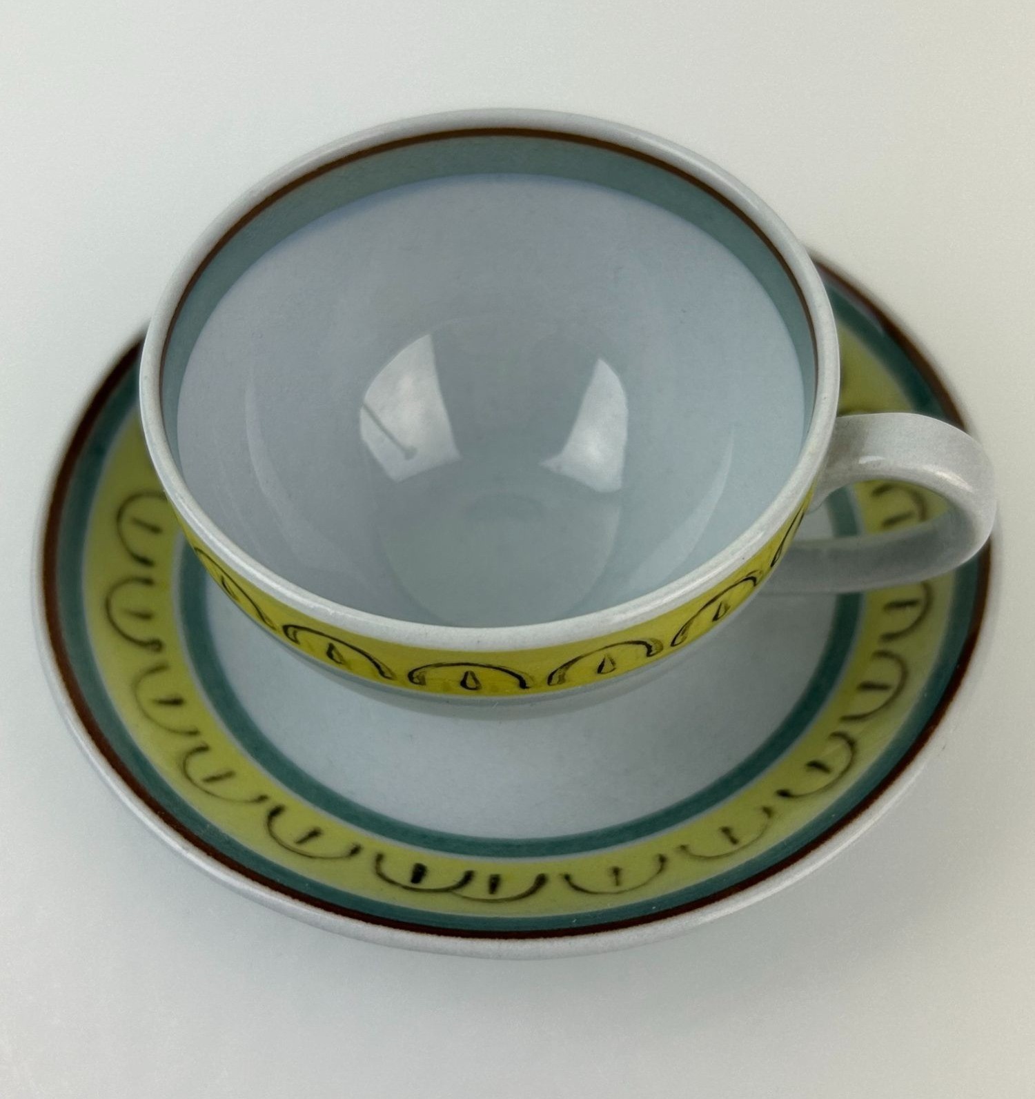 Description: Vintage Arabia of Finland “Crownband” Blue & Green Demitasse Teacup & Saucer Hand Painted Made in Finland Condition: Vintage- Pre-Owned- Has some small flea bites on edge of saucer. Otherwise good condition Approximate Measurements: Cup: 2.5″ inches Wide Opening Just under 2″ inches Tall Saucer: 4.5″ inches Wide Ships with care from a clean, smoke free home!