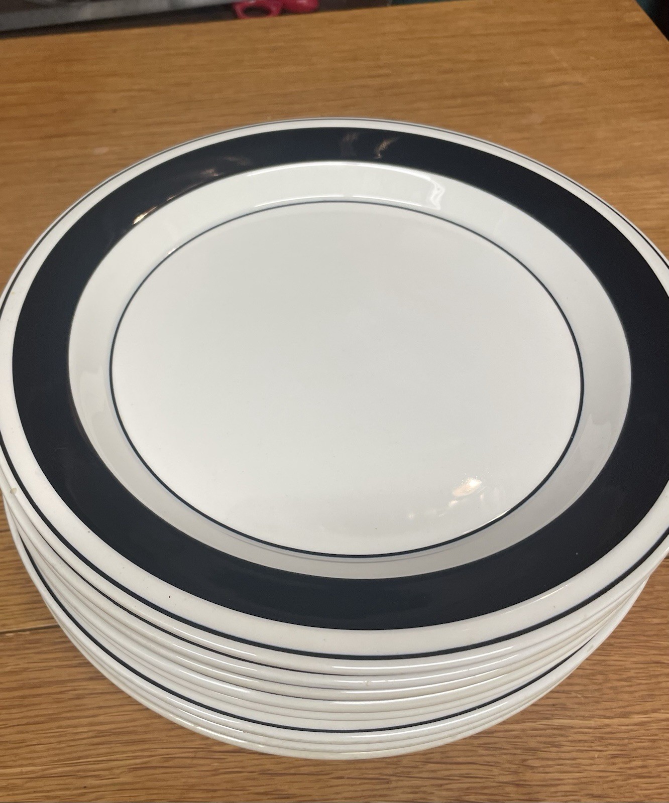 Description: Used, some light utensil marks but otherwise pretty nice. You get eight 11 inch plates