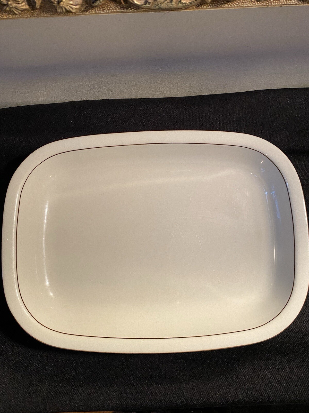 Arabia Fennica Beige W/ Brown Trim Rectangular Serving Dish 12” X 9” Finland