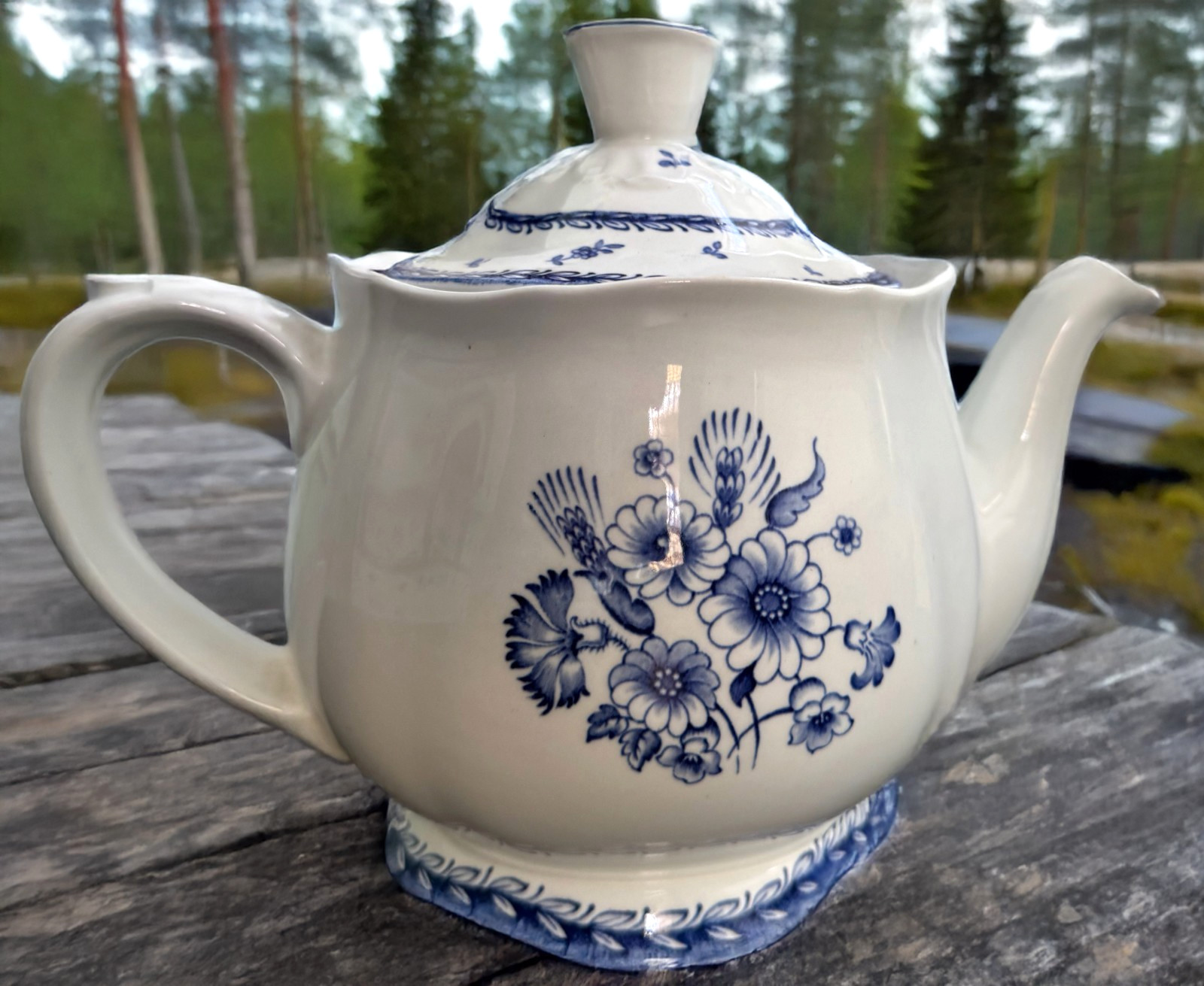 ARABIA OF FINLAND Finn Flower Blue Round Teapot and Lid Vintage fills to 5.5 cups