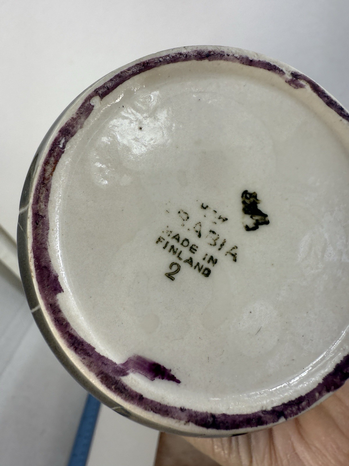 Description: Arabia Finland 8” Tall Flowers & Leaves Pottery Vase Black & White. Condition is Used. Shipped with USPS Ground Advantage.