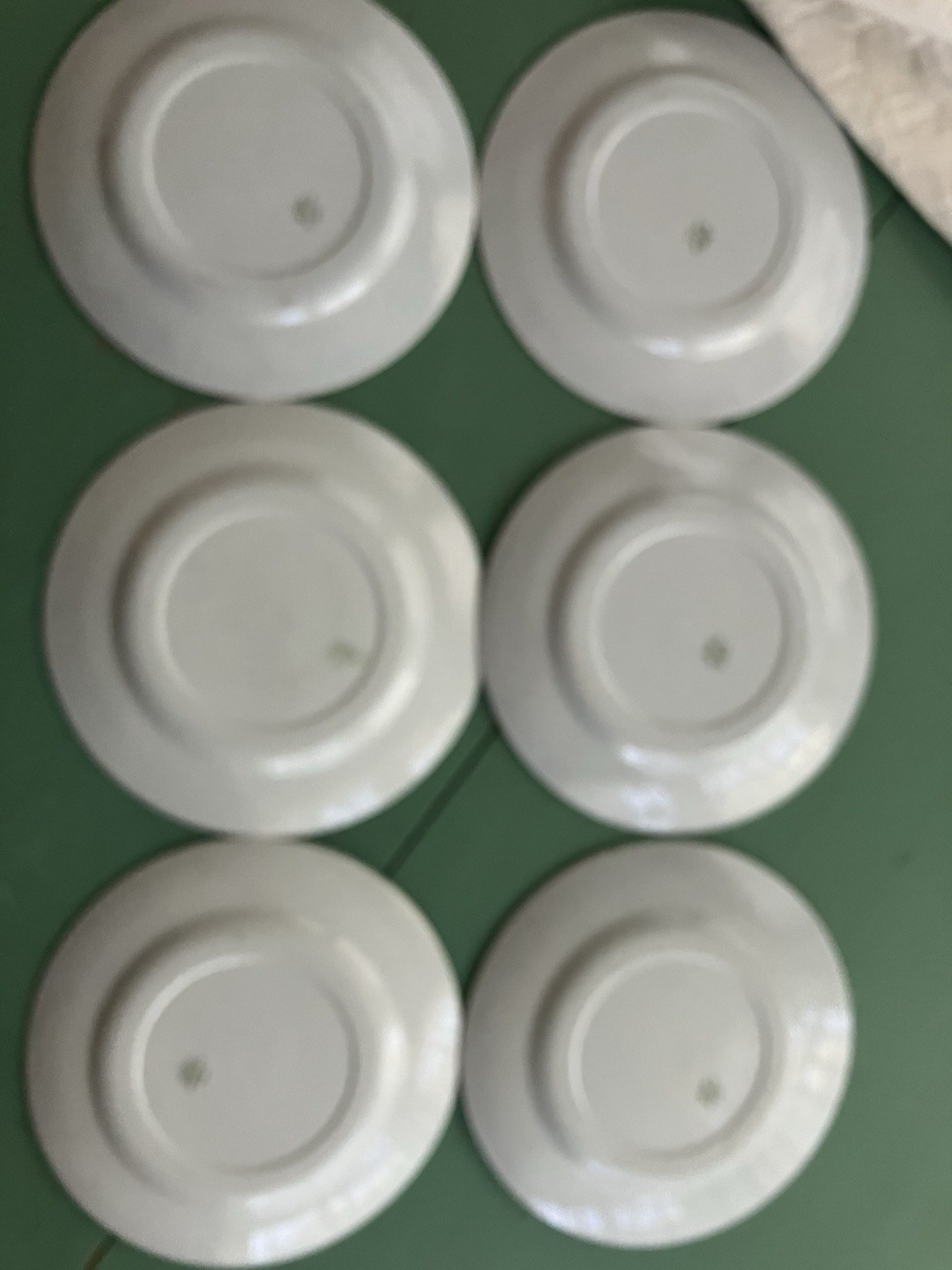 Description: Great mid-century floral pattern by Arabia of Finland, introduced in 1949 and discontinued in 1970. Set of six dinner plates, just over 10 inches in diameter. They are in fantastic condition, clean and undamaged.