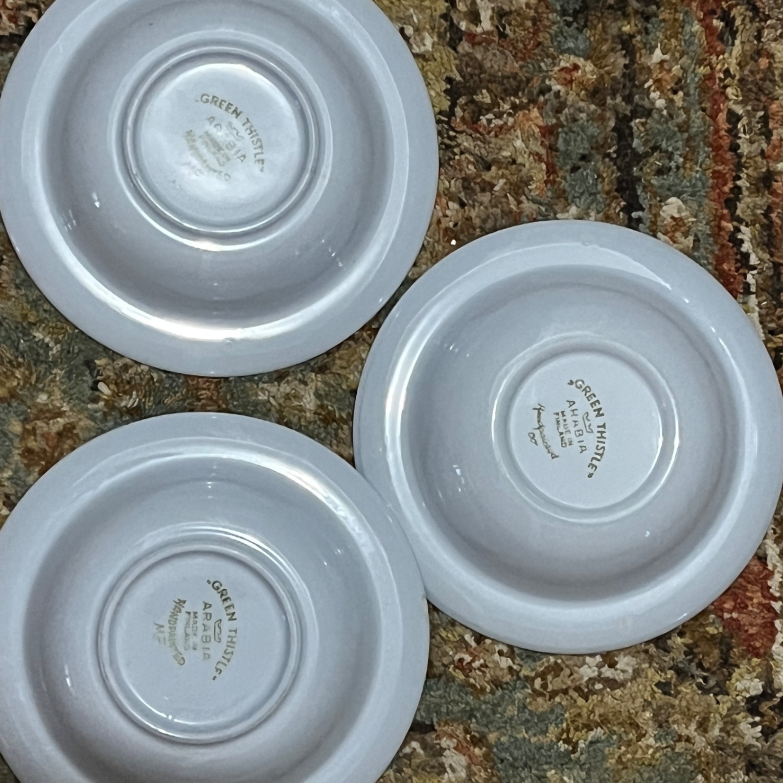Description: Arabia of Finland GREEN THISTLE Rim Soup Bowls 7 3/4” – 3 available.