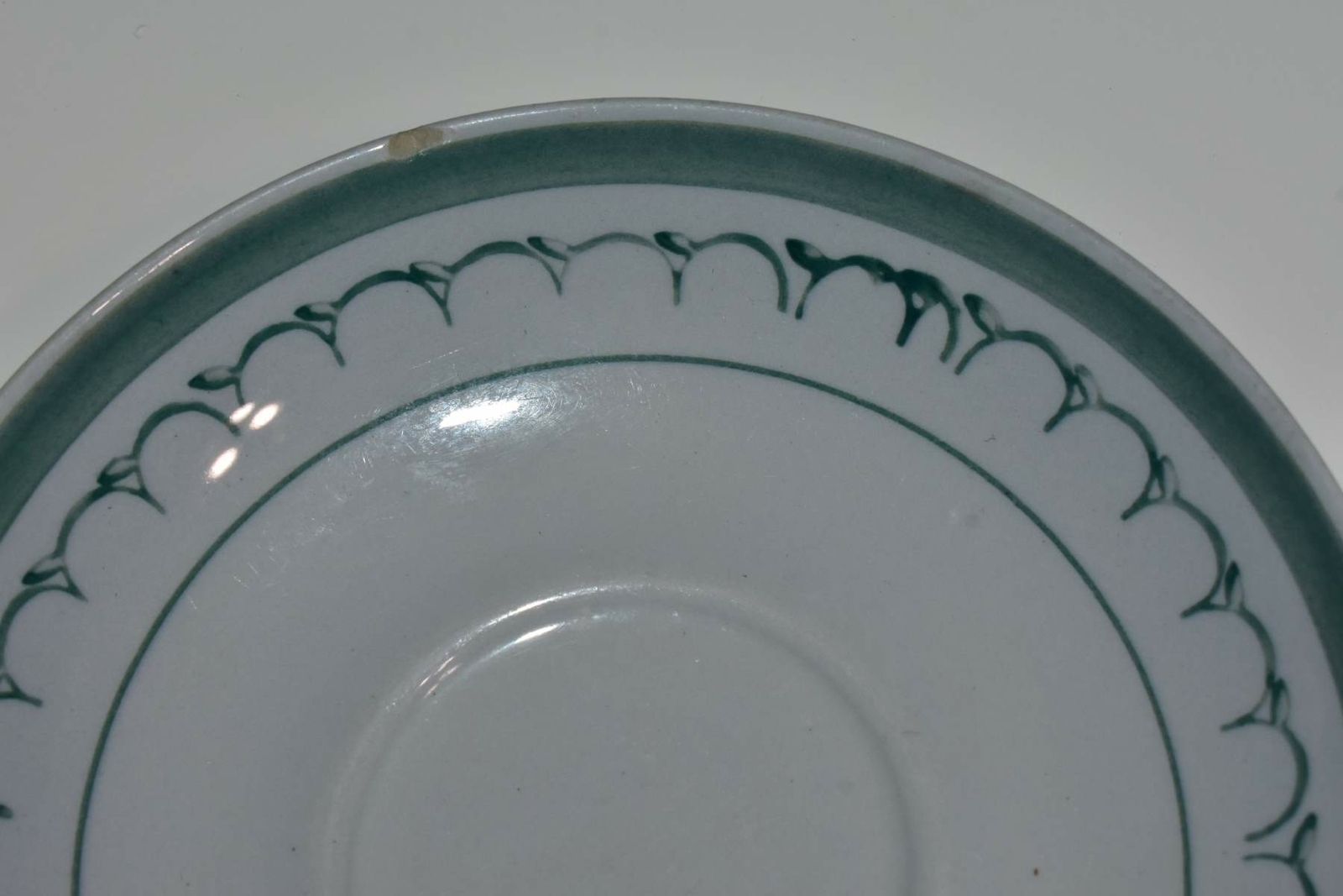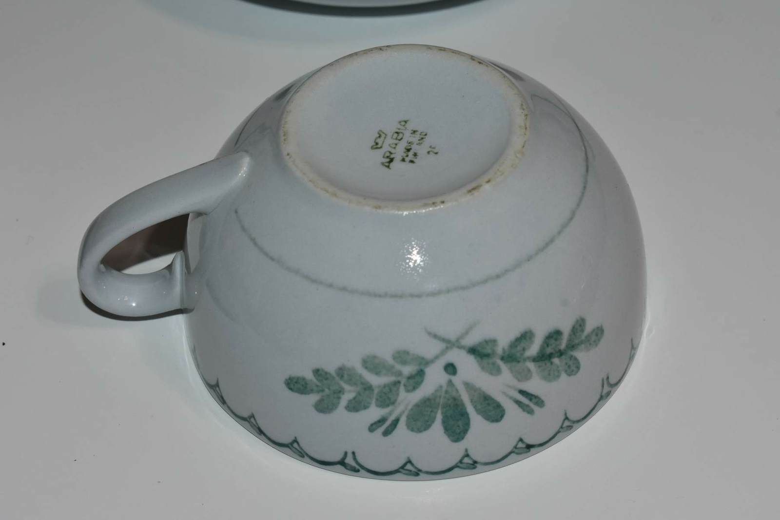 Description: One chip as shown and one handle has a crack as shown. Good condition.