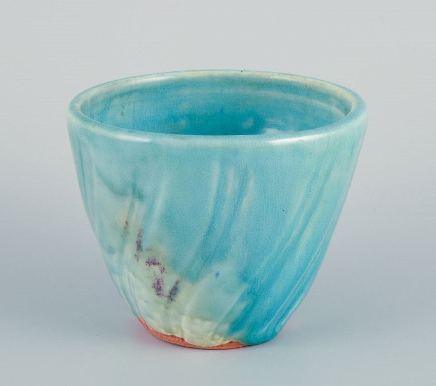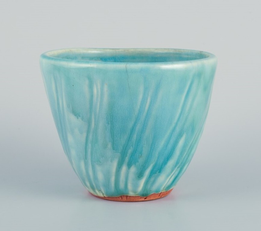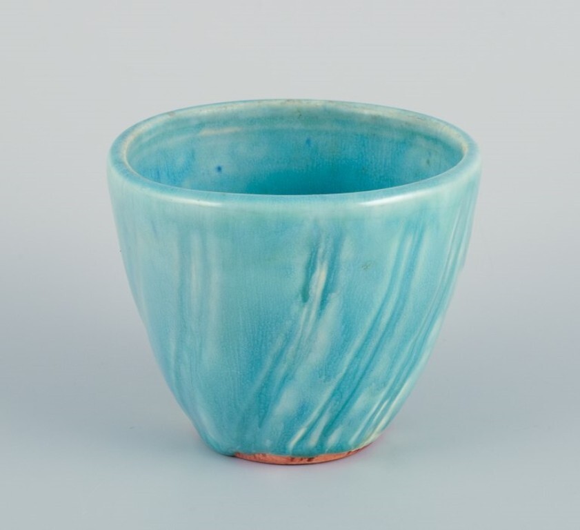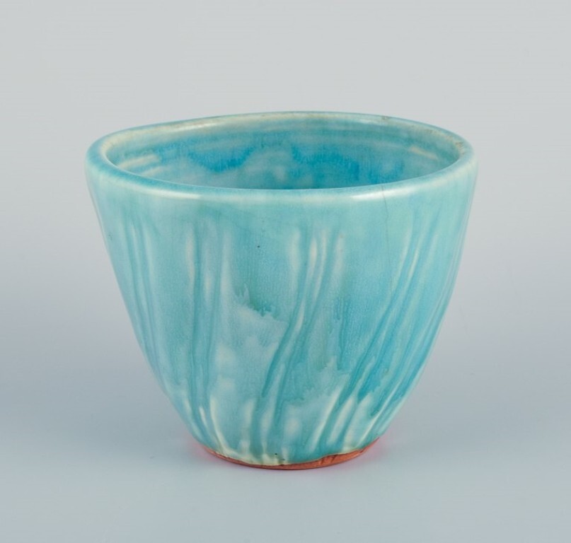 Description: Lea von Mickwitz (1884 -1978). Arabia, Finland. Unique ceramic bowl with turquoise glaze. In excellent condition with a hairline crack on the top.