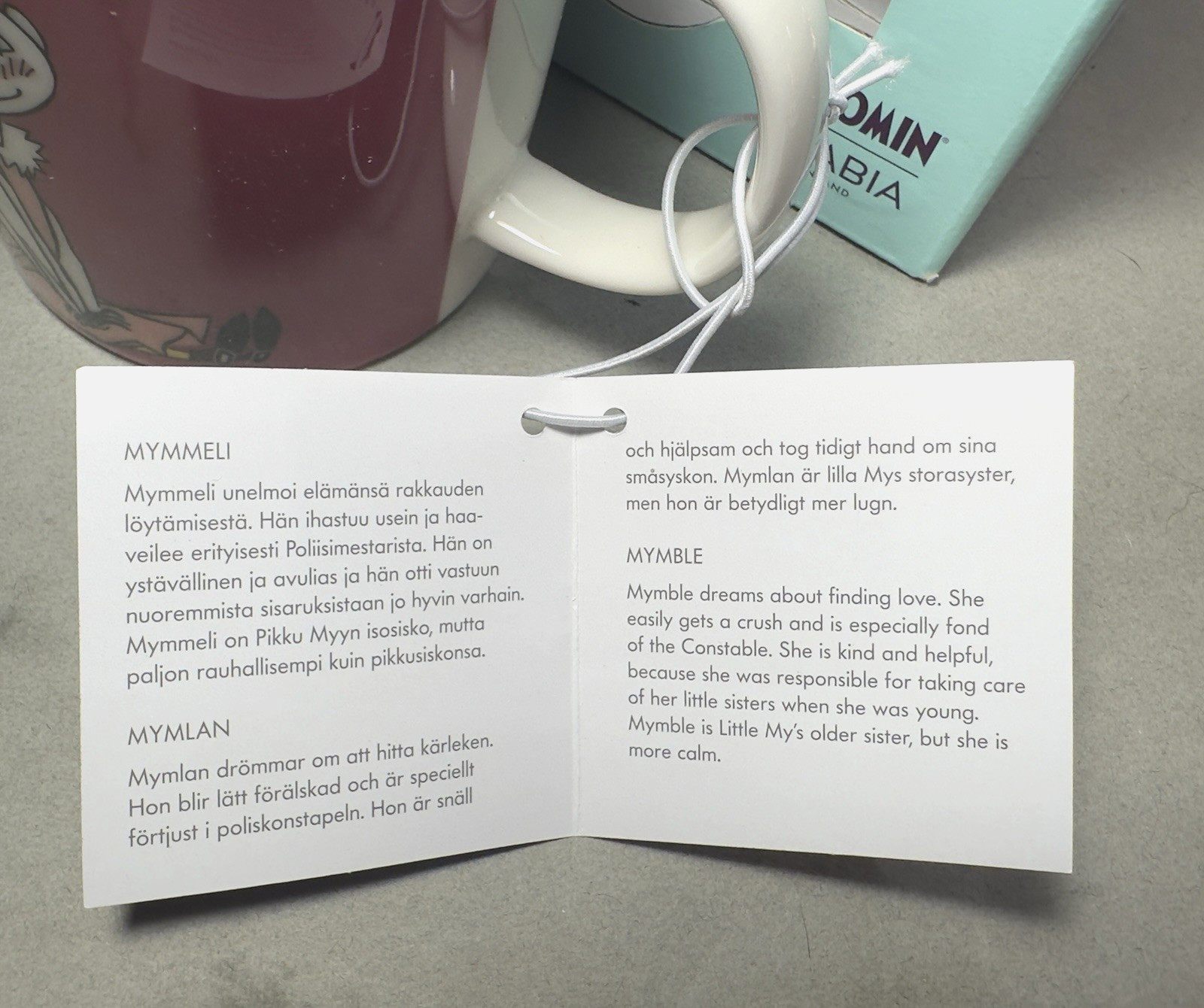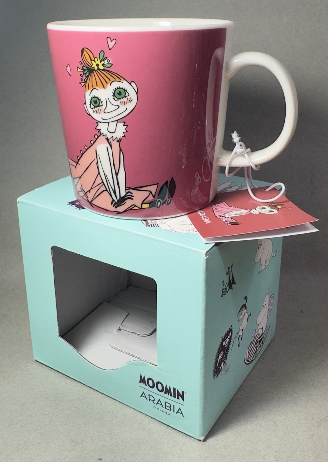 Description: The Moomin Arabia Finland 10oz Mug featuring Mymble is a contemporary piece of porcelain art by artist/author Trove Jasson from Finland. This limited-edition mug is part of the Moomin product line, making it perfect for all occasions. With a glossy finish and vibrant multicolor design, this round mug showcases intricate details of the beloved Mymble character. Microwave and dishwasher safe, this unique mug is a must-have for fans of the Moomin series, offering free shipping from Thailand to your doorstep.