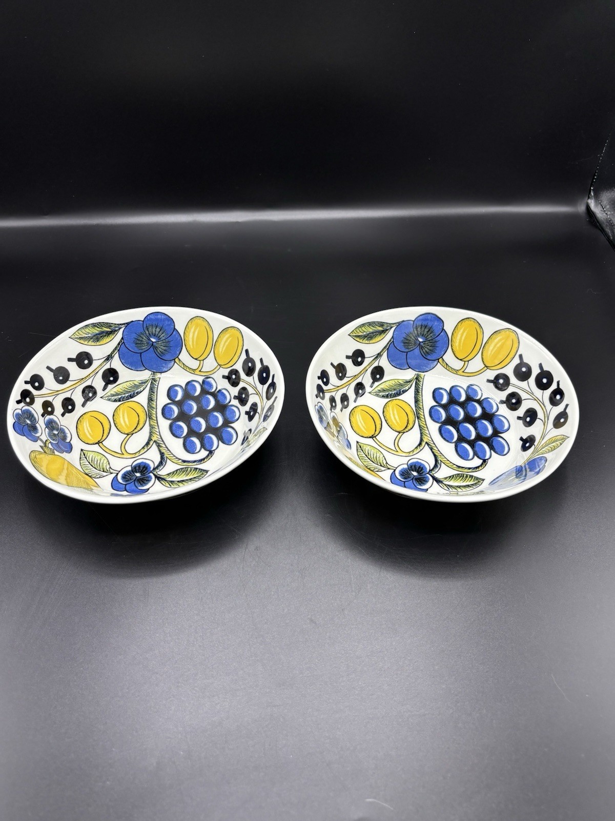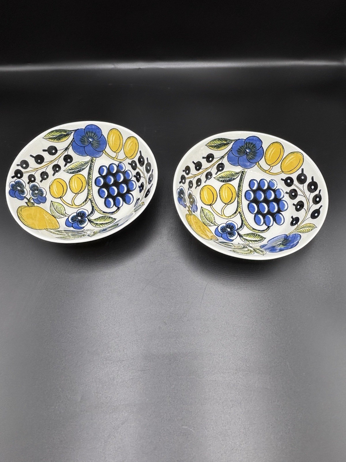 Set Of 2 Arabia Finland Paratiisi Bowls Oval Cereal/Soup Blue And Yellow Fruit