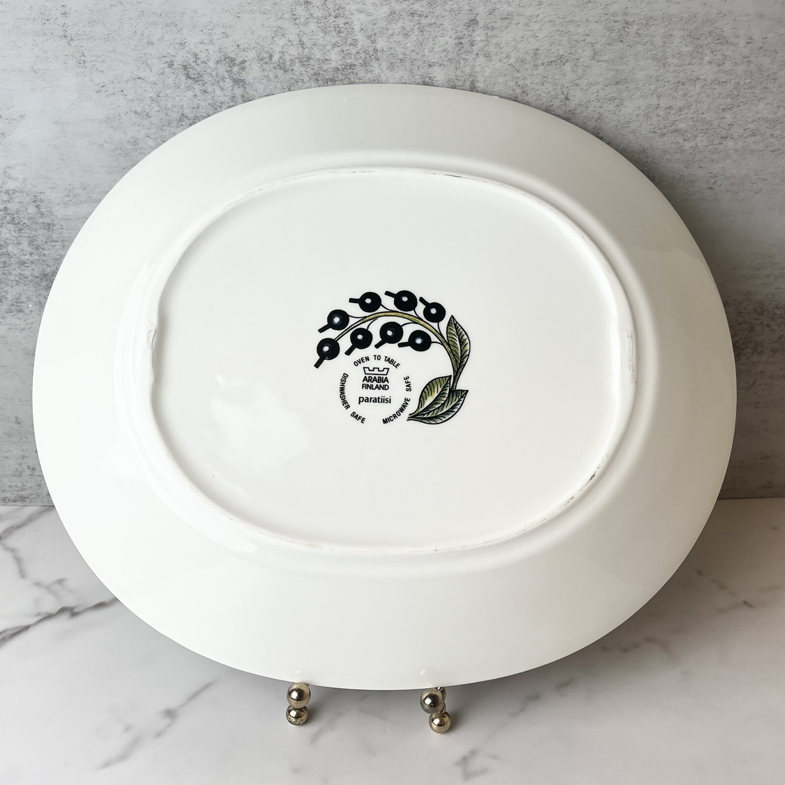 Description: This Iittala Birger Kaipiainen serving plate is a STUNNING addition to any collection. The plate features a vibrant paratiisi design in white, blue, and yellow, with a mid-century modern style. It is made of high-quality bone china and is machine washable up to 100°F, making it perfect for everyday use. The plate is ideal for serving during special occasions, such as bridal showers, Easter, baby showers, anniversaries, or birthdays. It is a one-piece set that includes a serving platter and has a glossy finish. The backstamp is printed and the plate was made in Finland. This fruit and floral themed plate is perfect for adding a touch of color to any table setting.