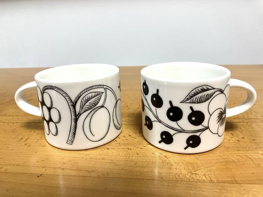 Description: [Old logo] ARABIA Black Paratiisi coffee cup & saucer set of 2. The saucer has a flat style that can also be used as a plate for cakes, etc., and is easy to use. 7 cm, height 6 cm. The backstamp is a very rare crown logo.