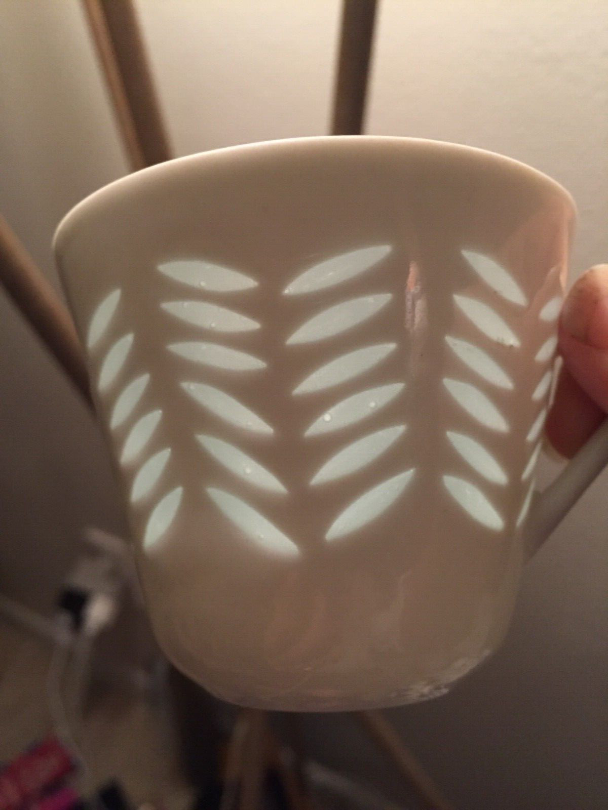 Description: Rice grain pattern. Off white with mint green appearance when light shines through them.