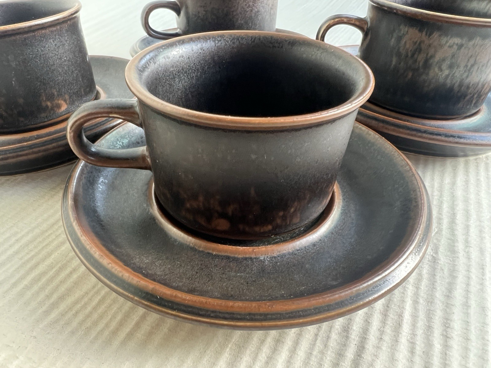 Description: Excellent condition. 4 sets of cup and saucer. All pieces marked on the under side.