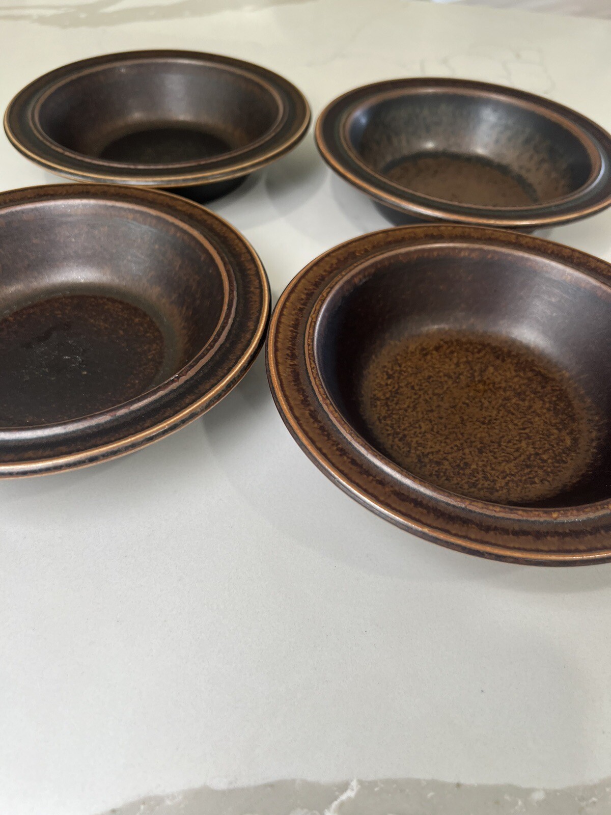 Description: Arabia of Finland Ruska- Light & Dark Brown- Set of 4 Rim Cereal Bowls- 6 7/8″. Condition is Used. Shipped with USPS Ground Advantage. Inventory B