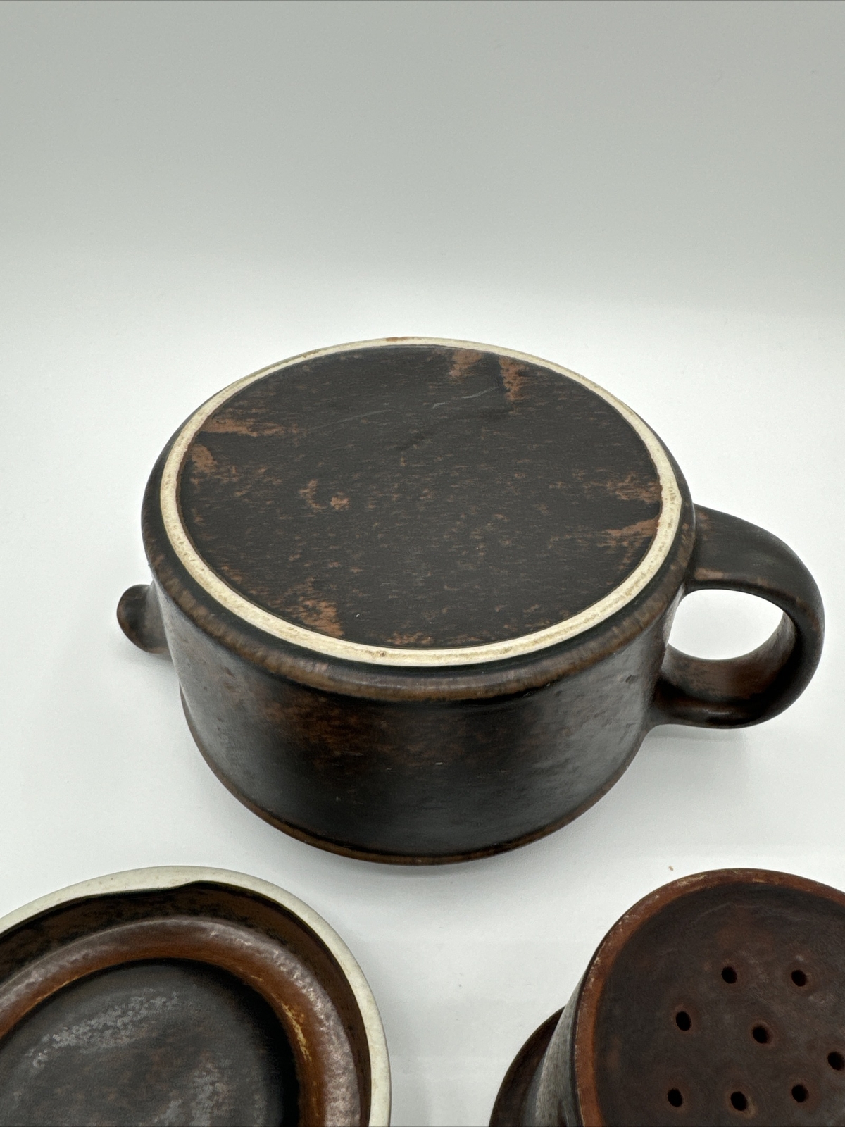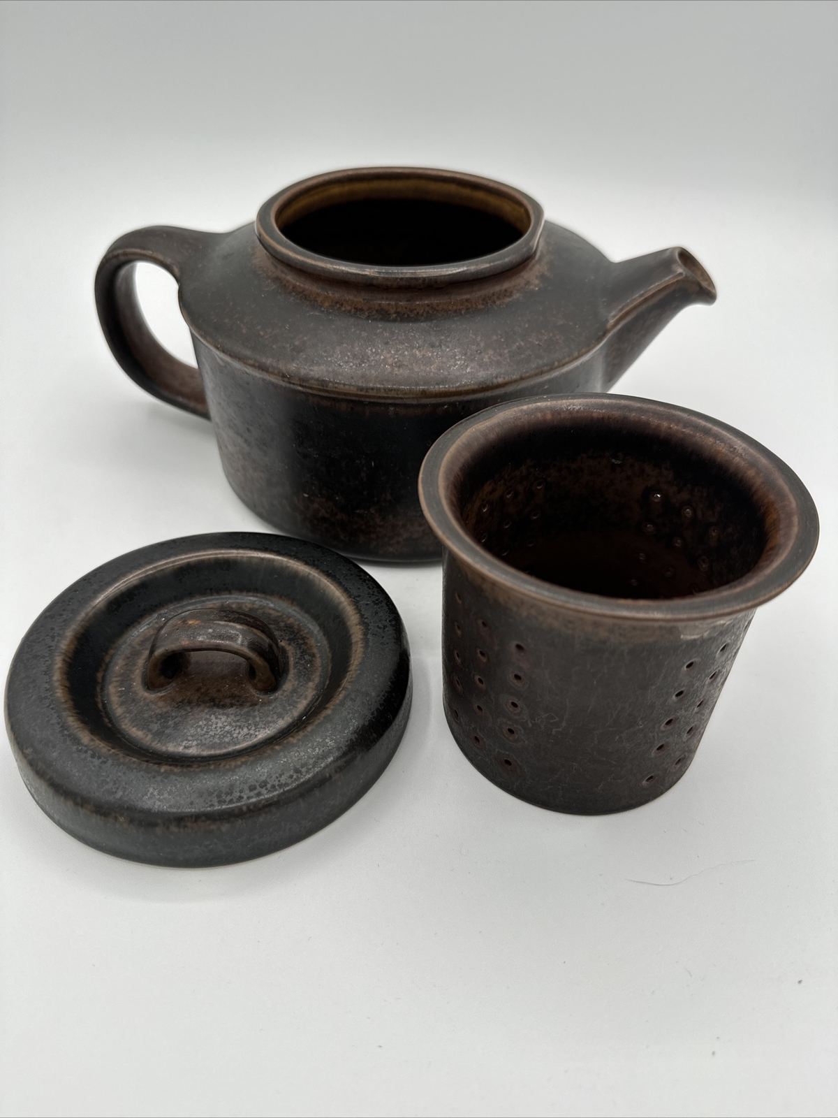 Description: Arabia Ruska Brown Teapot Complete very Good Preowned Condition.
