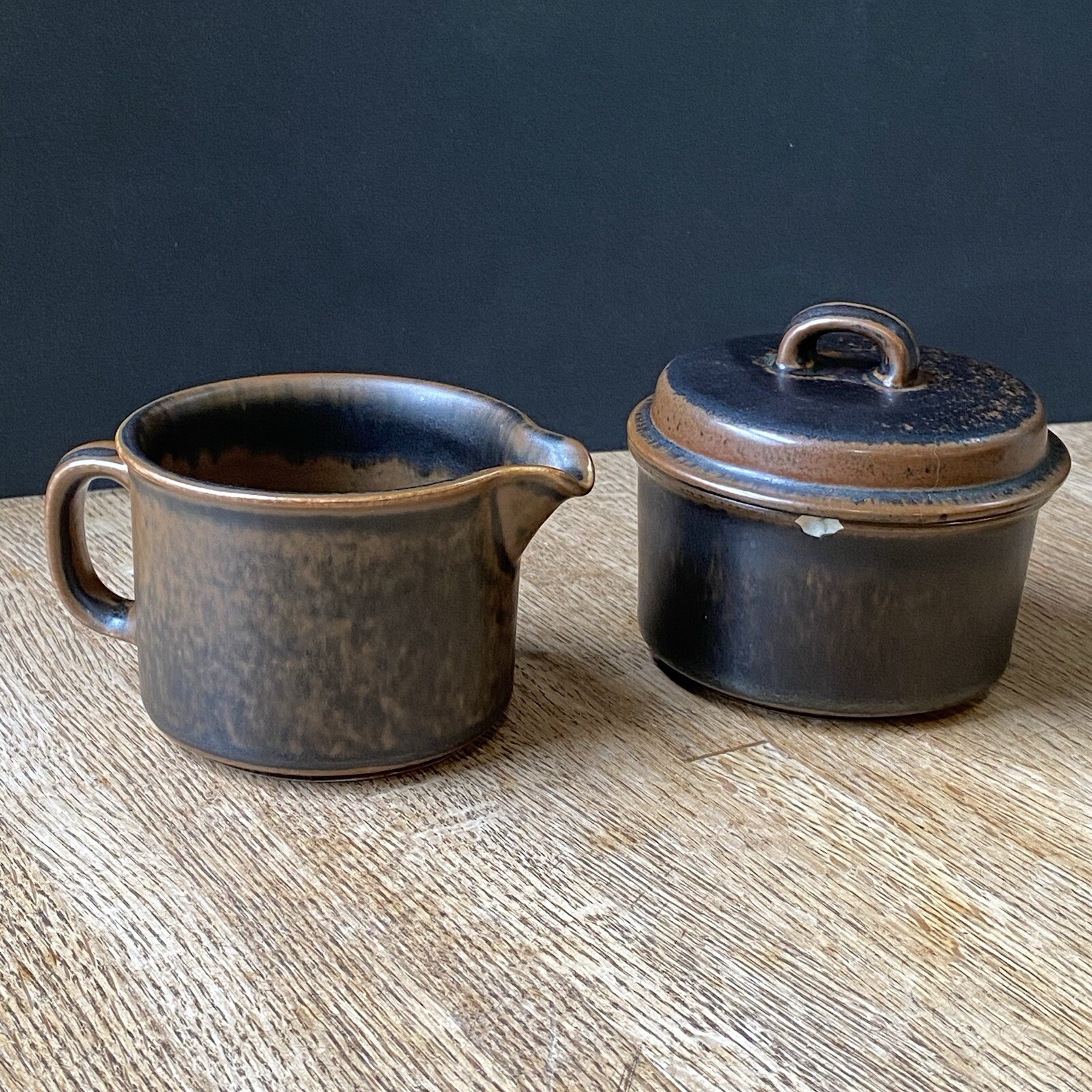 Description: Excellent condition! The natural glaze variation on this is gorgeous! I also have the sugar bowl shown in the last photo. As you can see, that has a good sized chip. I’m happy to include it if you want – just let me know. These will be safely packed for shipping. Please check out my other listings for more Ruska pieces.